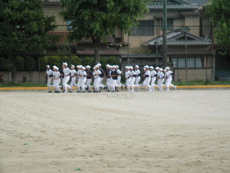 グランドの外野を行ったり来たりする