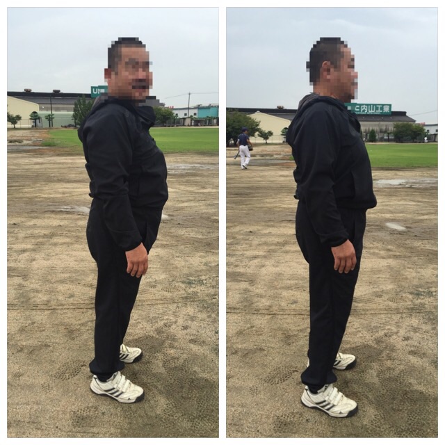 お腹が出て背中が丸まっていて