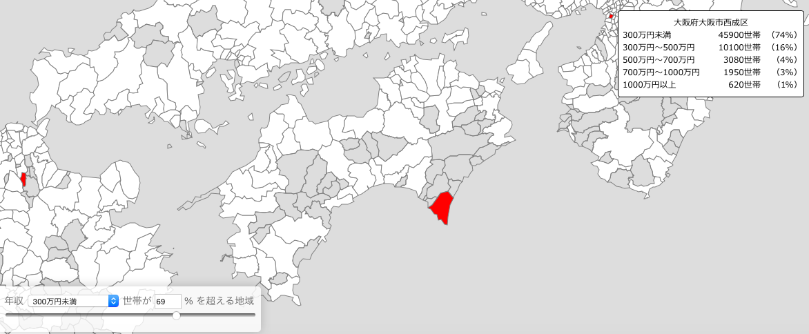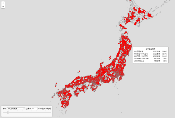 「世帯の年間収入マップ」。