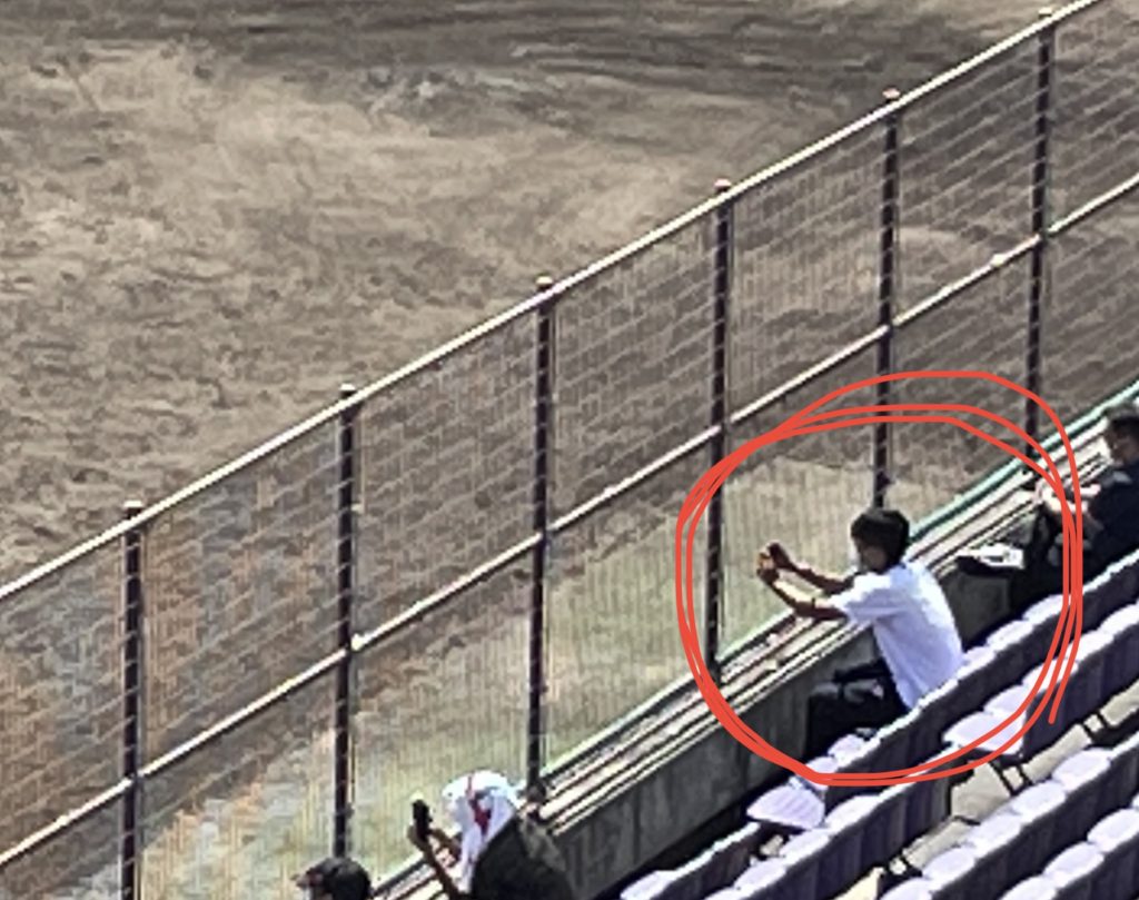 この試合ではベンチの外で