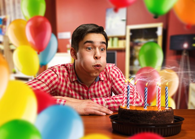 ろうそくに息を吹きかけて