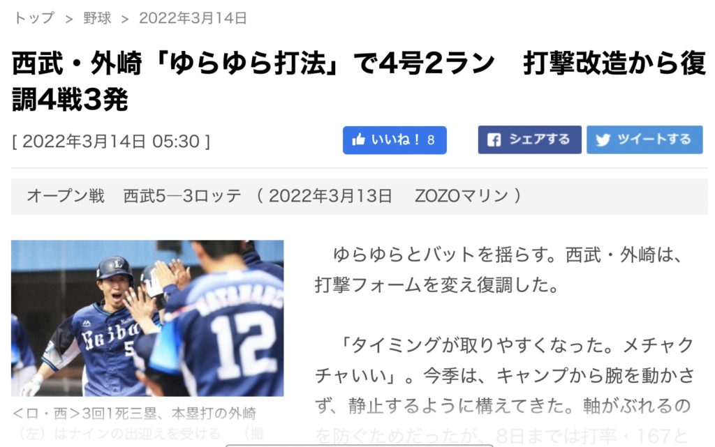 西武の外崎選手が急に好調なワケとは?