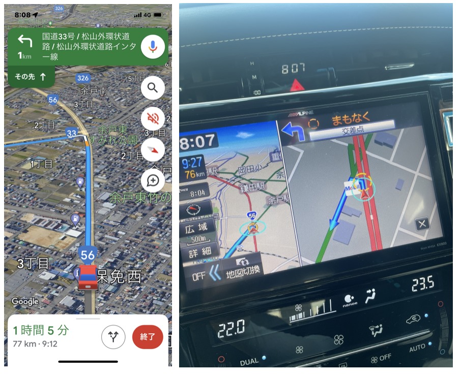 カーナビとGoogle マップの