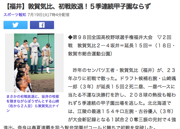 敦賀気比高校が2回戦で