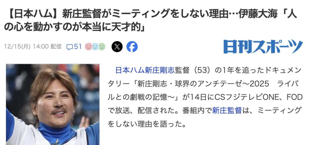 新庄監督の記事を読んで、