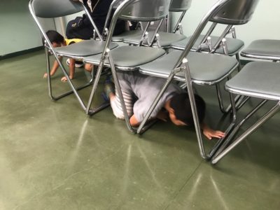 パイプ椅子を広げて