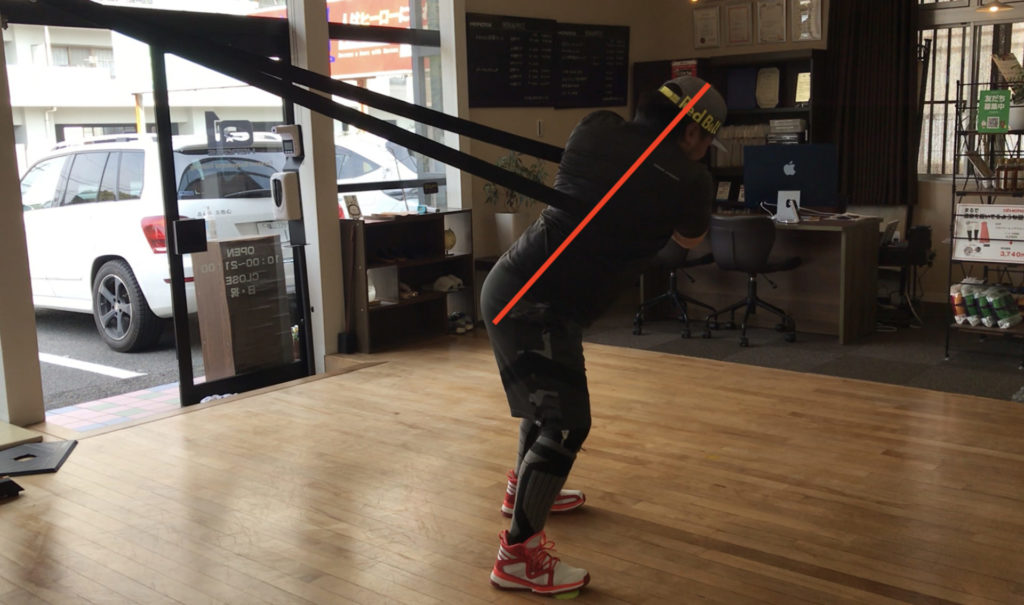 スイング中に上体が